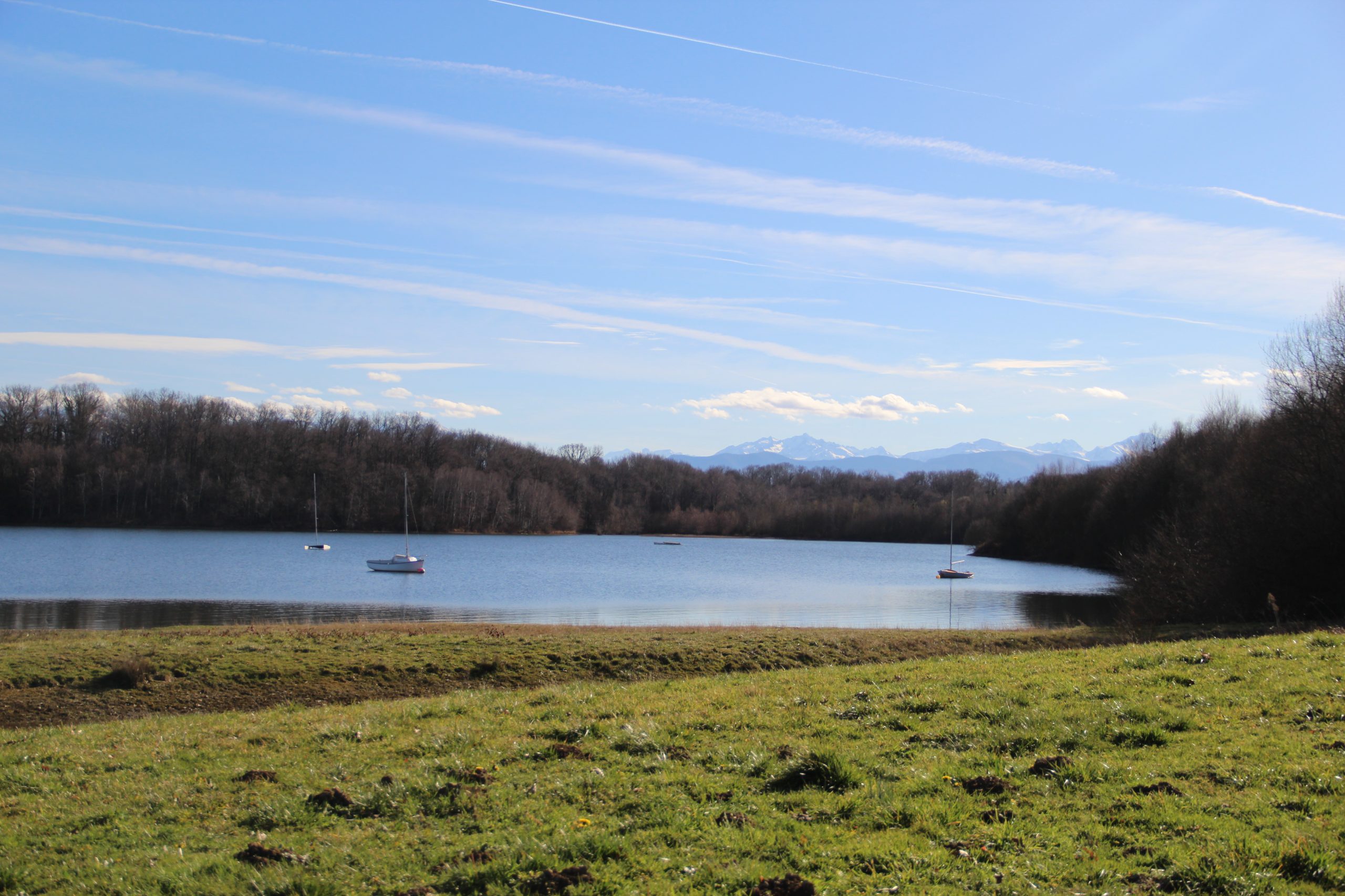 Nous ne ferons pas le tour complet (12.1 km), mais la vue sur le lac avec les Pyrénées en toile de fond est très agréable. Après une petite pause au bord de l’eau, ce sera donc retour à la voiture. Poupette aura bien marché, fait de nombreux coucous aux petits et plus gros chiens (tenus en laisse) et finira la balade sur les épaules de papa!