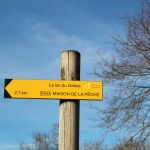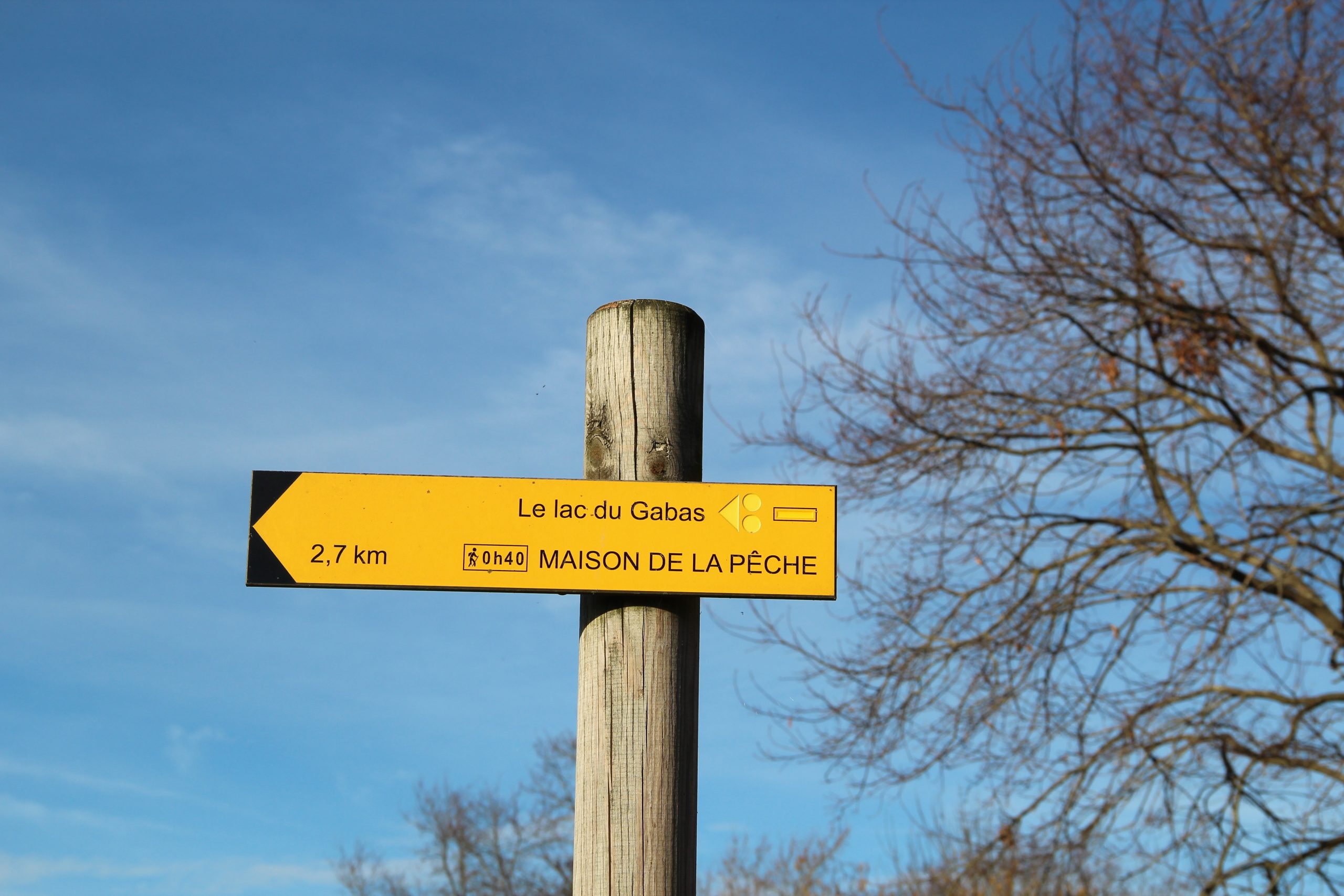 C’est la première fois que nous nous rendons au lac. Le GPS nous indique une petite route qui nous emmène à proximité des chemins balisés (PR balisage jaune). Nous laissons la voiture, et nous repérons rapidement quelques promeneurs équipés de bâtons de marche. Le chemin est bien entretenu et même pavé de petits cailloux, ce qui nous évite la gadoue. Il serait même praticable en poussette.